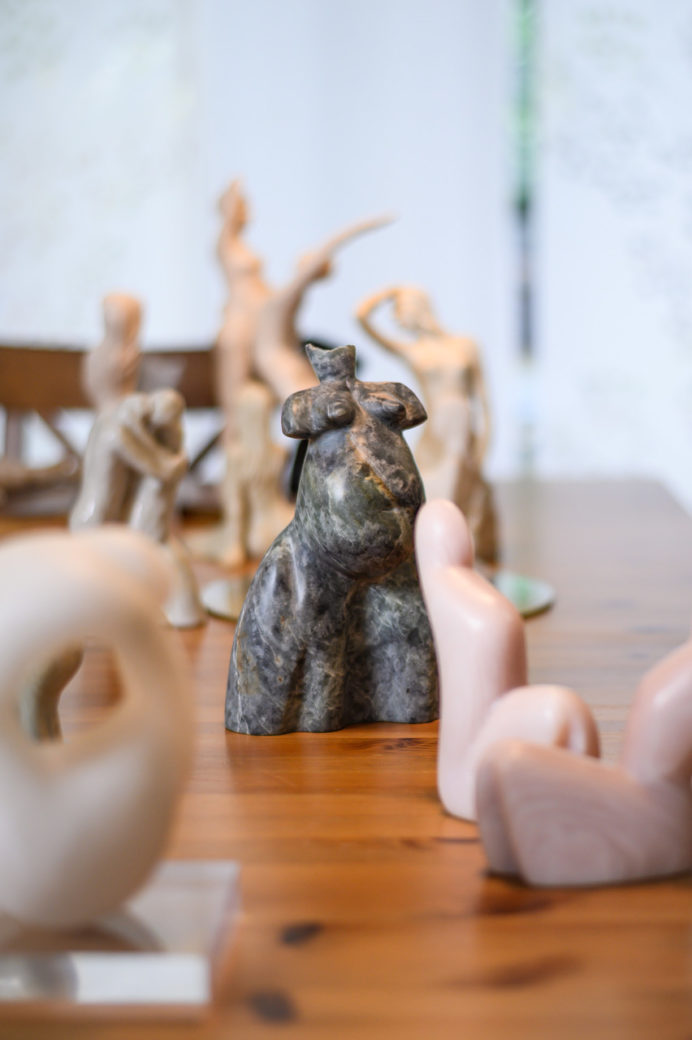 However, her real passion for artistic expression grew stronger in her all throughout these years and she did achieve her aspiration and started sculpting in 2017 with clay at the atelier « le Chaudron » with Kaiti Morou. That was the “Strofi” “The turning point” in her life. Since 2021 she realised another dream and started to learn the art of stone carving with Sofi. Anna is known for her expressive sculptures that capture movement, energy and emotion.